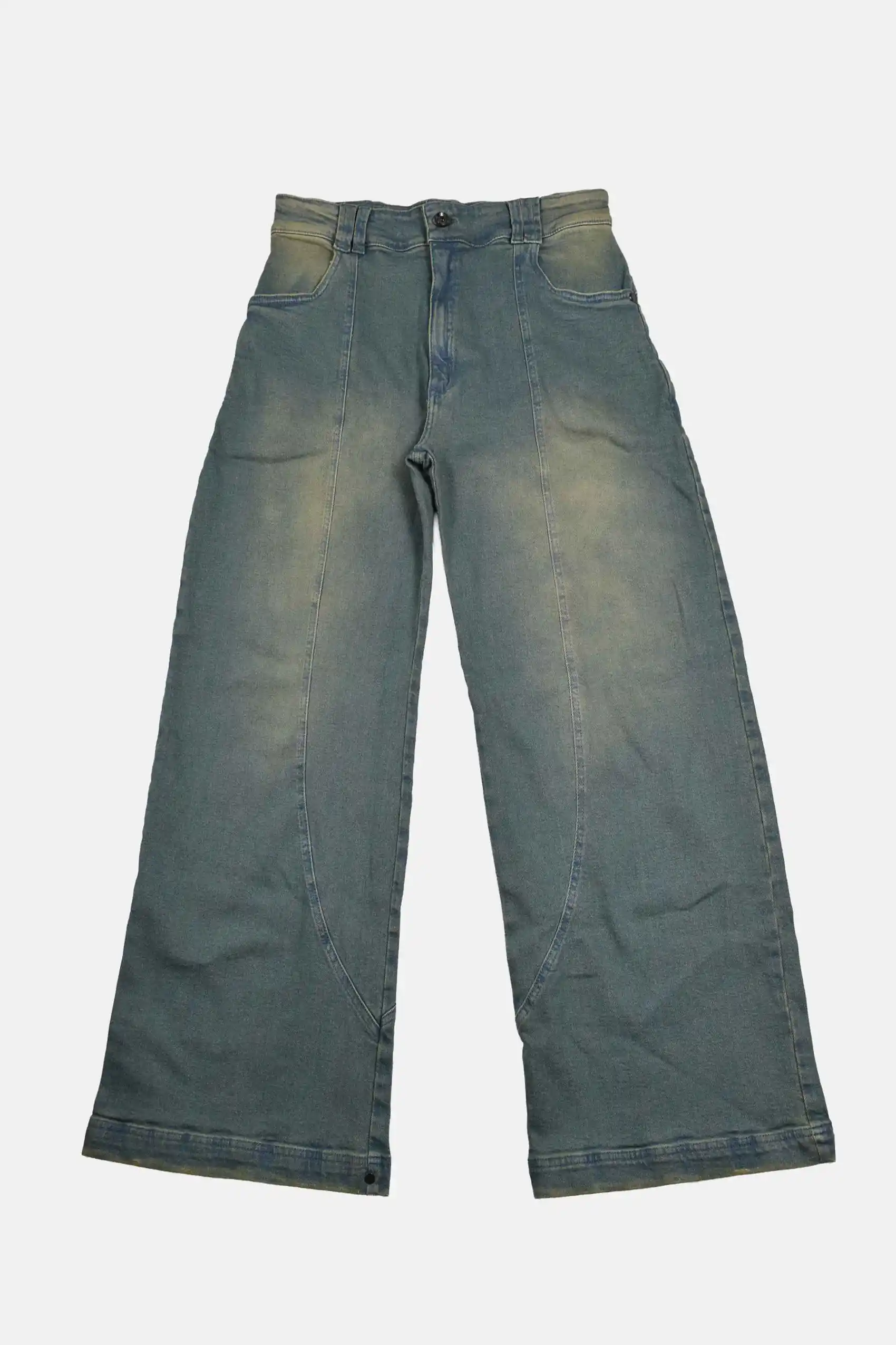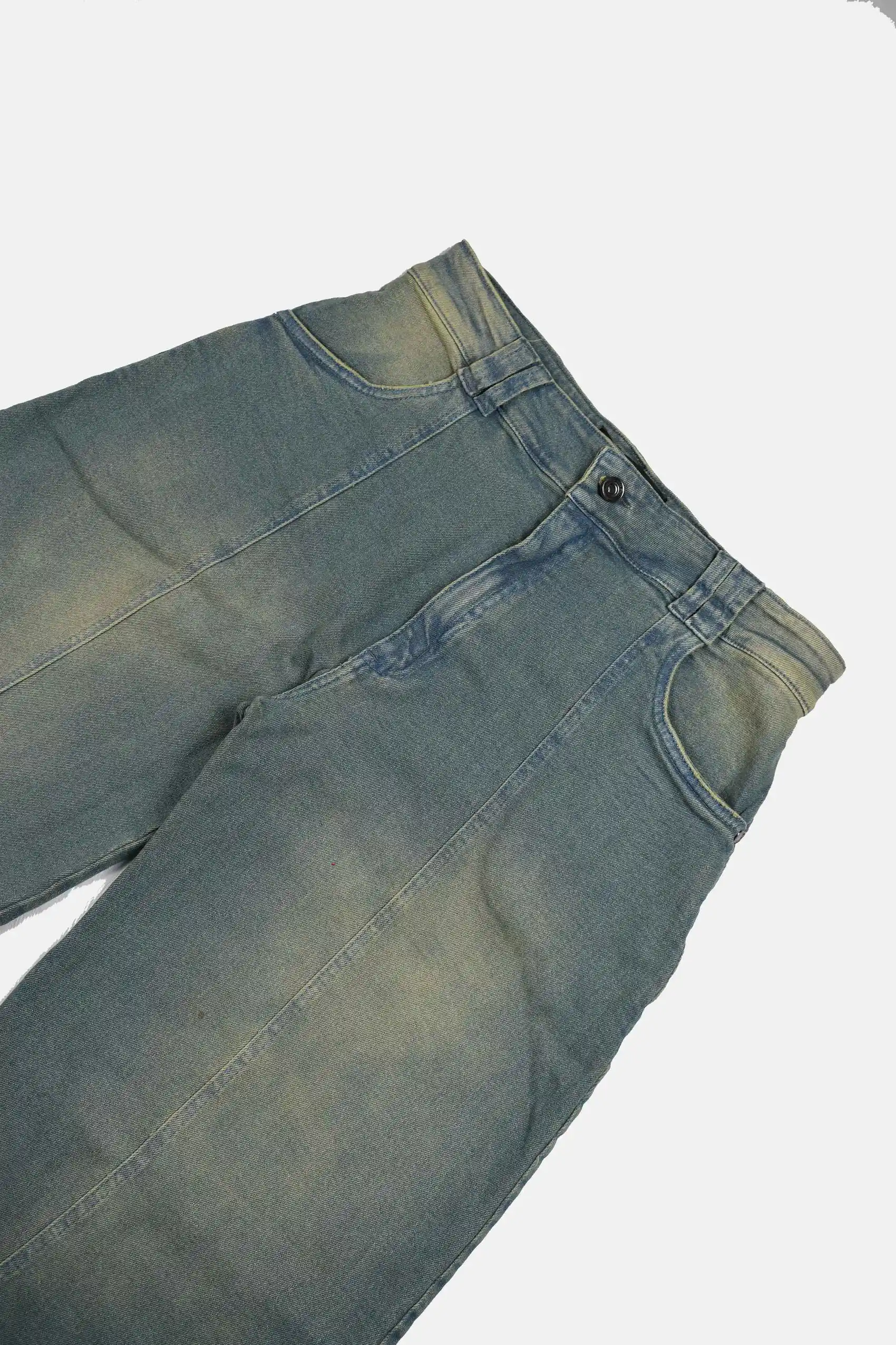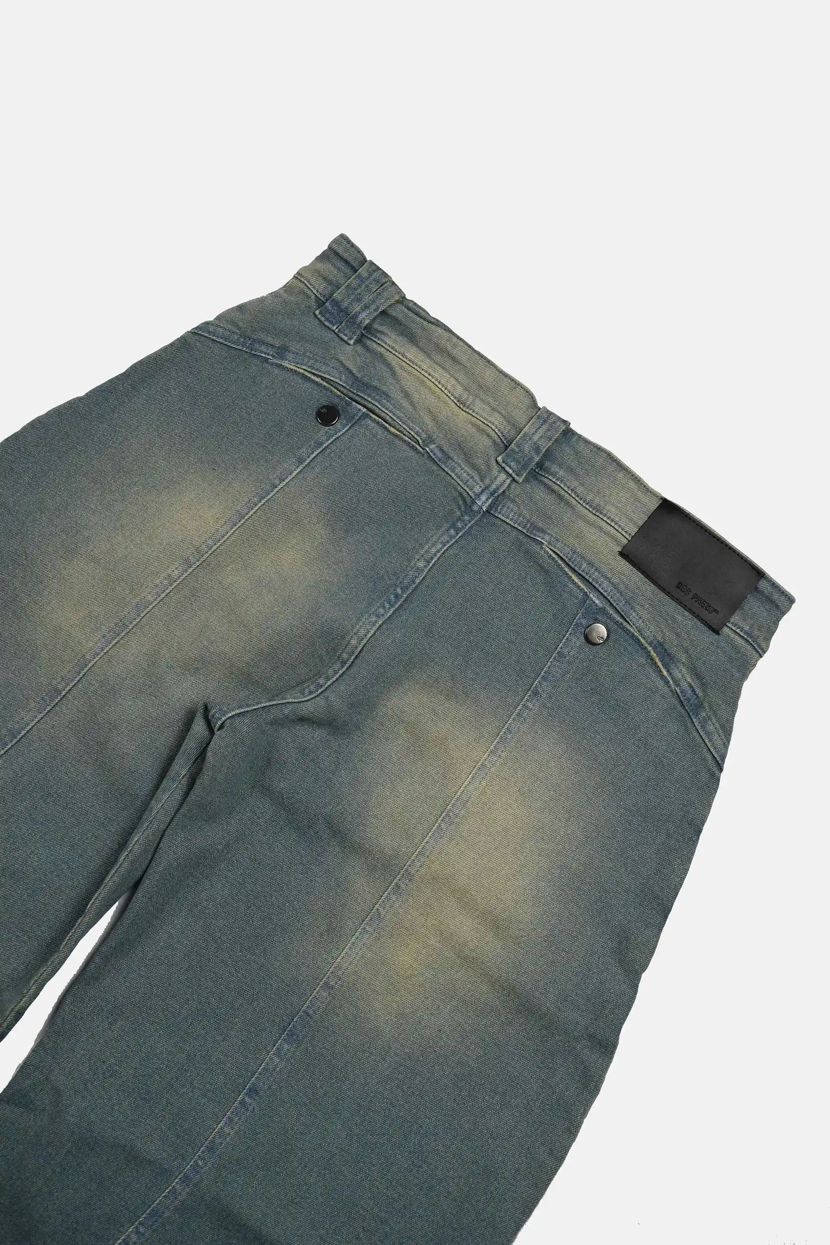 A Calça Des Prezo Youth Damage Pants traz a estética crua e autêntica que define o DNA da marca. Com modelagem baggy/wide e lavagem azul esverdeada única, a peça combina conforto, impacto visual e atenção aos detalhes. O design conta com recortes curvos na parte frontal e traseira, bolsos funcionais com fechamento por botão de pressão e puídos estratégicos que reforçam a proposta de desgaste natural. O cós com passantes duplos e etiqueta em couro aplicada nas costas finalizam a construção, enquanto o processo de lavanderia com tingimento localizado e aspecto sujo confere caráter exclusivo a cada unidade.