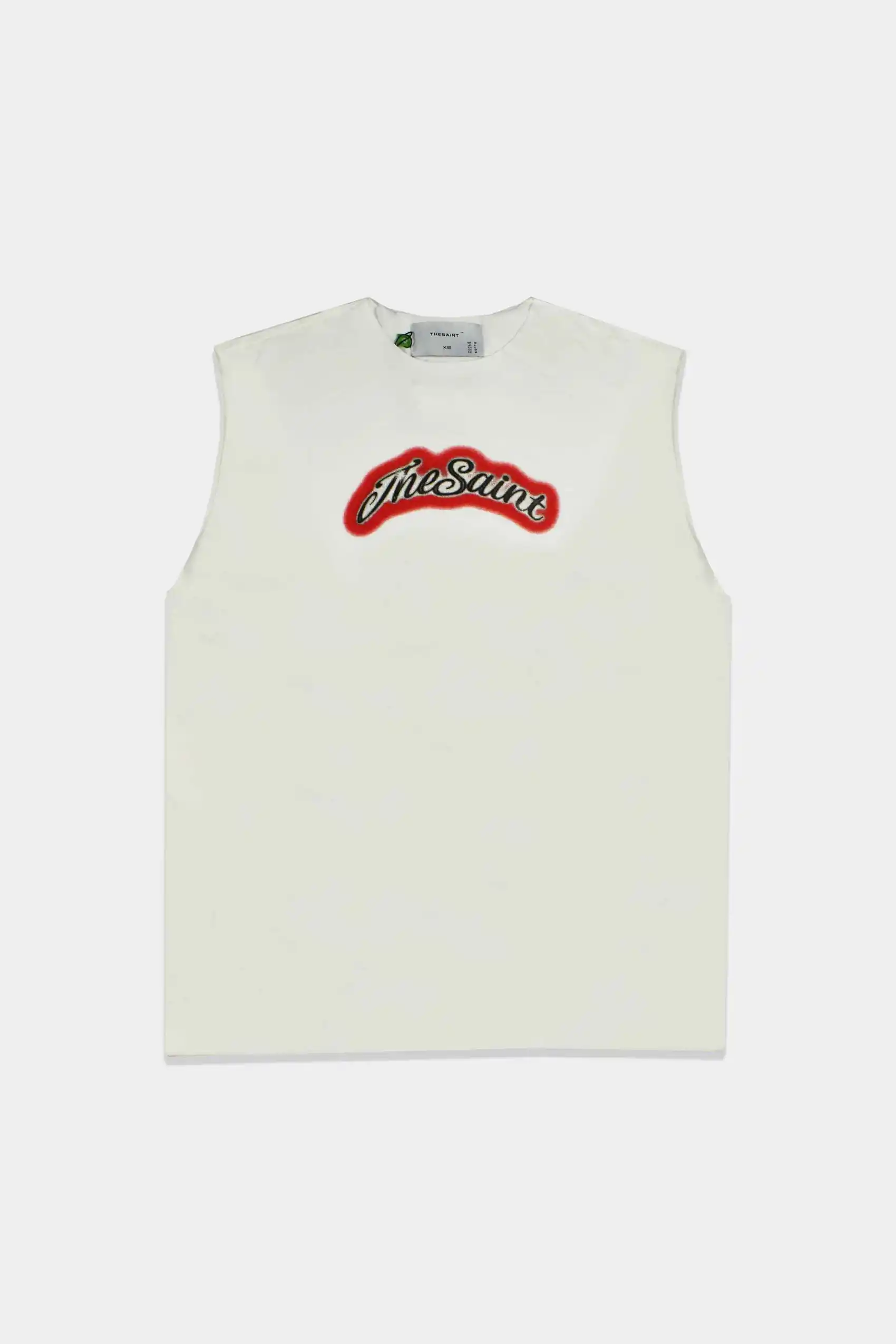 A Regata TheSaint Airbrush (Off White) é marcada pela combinação de leveza e identidade gráfica. A assinatura TheSaint surge em tipografia manuscrita, contornada em vermelho, criando contraste vibrante contra o fundo neutro. Com cavas amplas e corte levemente solto, é a peça ideal para composições streetwear frescas e cheias de personalidade.